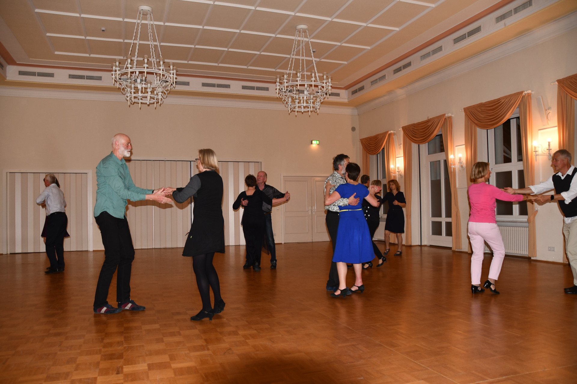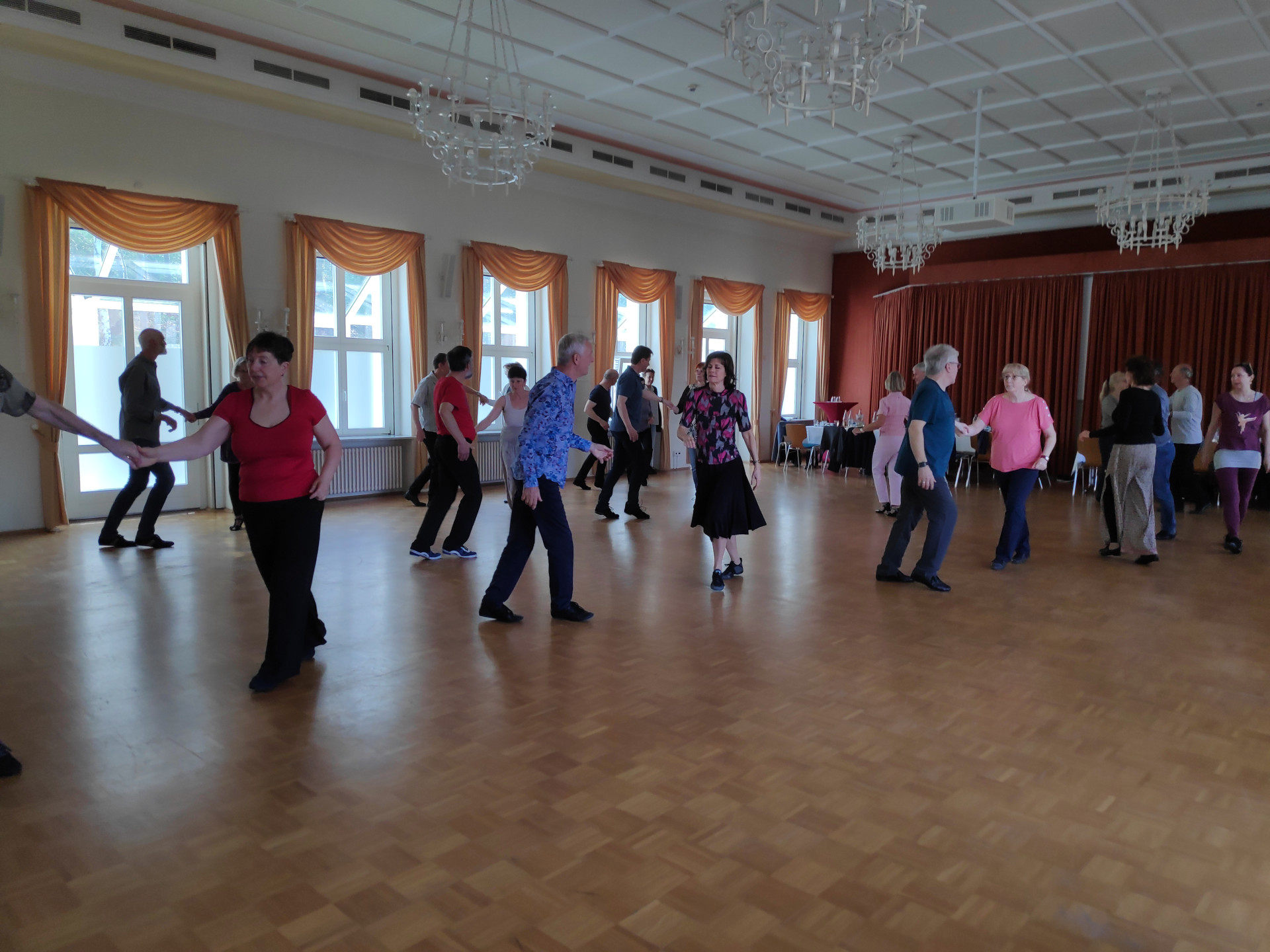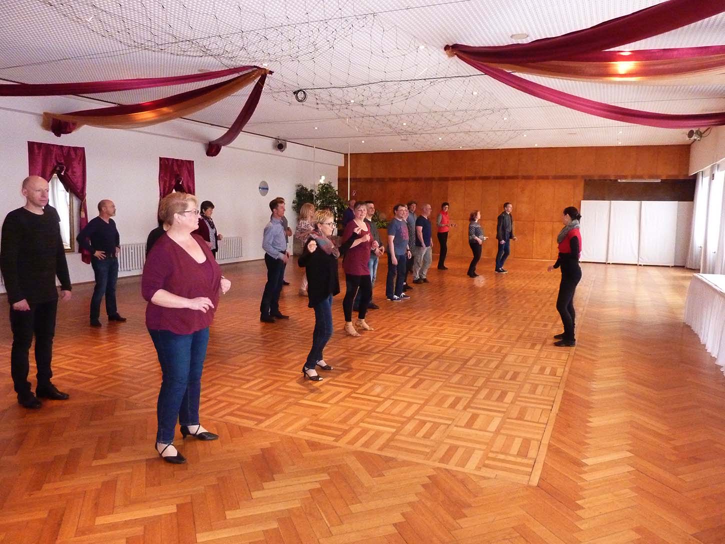 Nach dem Abendessen ist dann beim freien Durchtanzen des gesamten Tanzprogramms Gelegenheit, Erfahrungen mit den anderen Tanzbegeisterten auszutauschen und sich fachkundige Tipps von unserer Tanzlehrerin zu allen Tänzen des eigenen Repertoires zu holen.